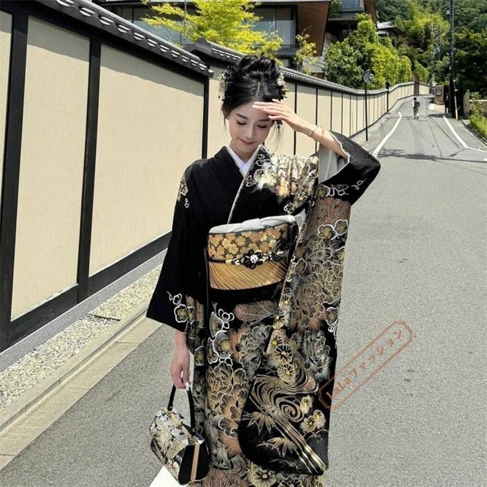 浴衣 和服 黒 レディース ゆかた 女性 ワンピース セット 花柄 大人 ワンピースタイプ 花火大会 作り帯大人 着物 kkkili