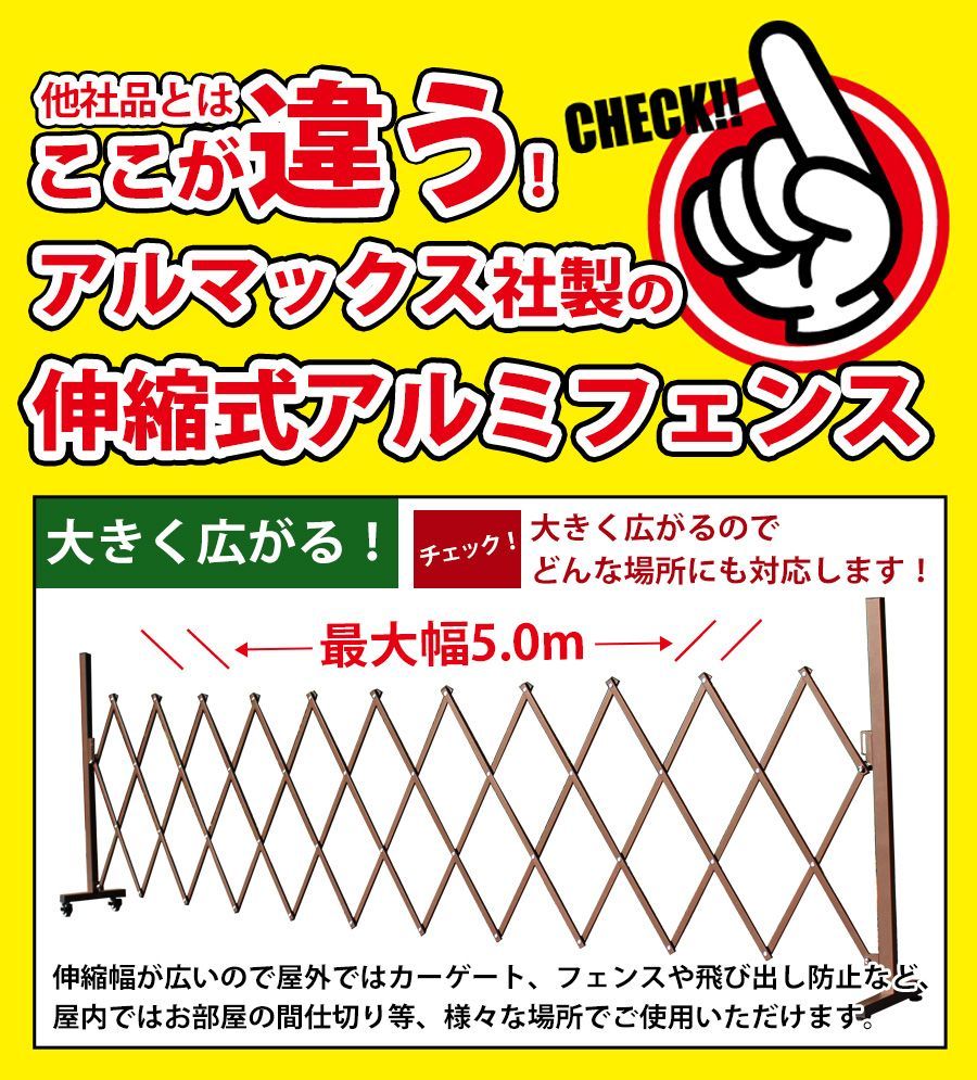 QXG 1050 フェンス 5 m 木目調 目隠し 屋外 アルミ ゲート 伸縮 門扉 ペットゲート 犬 キャスター付き 伸縮式 アルミフェンス エクステリア ガレージ 間仕切り ALMAX アルマックス mer 11