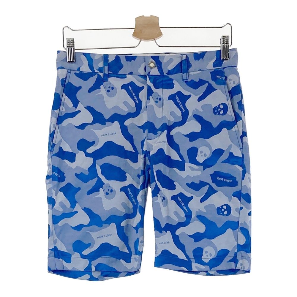 サイズ S MARK-LONA マークアンドロナ ストレッチハーフパンツ ロゴ×カモフラ柄 ブルー系 ゴルフウェア メンズ ストスト