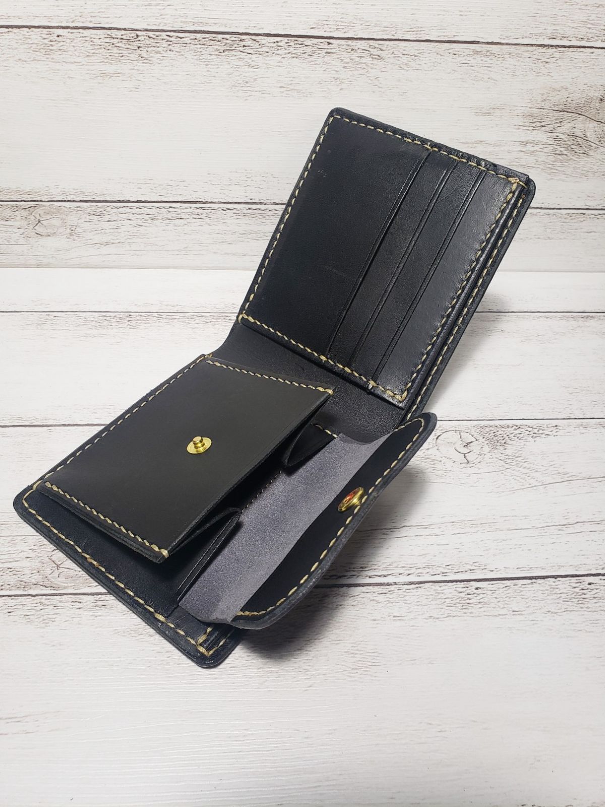 カラーオーダー 総手縫いの選べる革の2つ折り財布