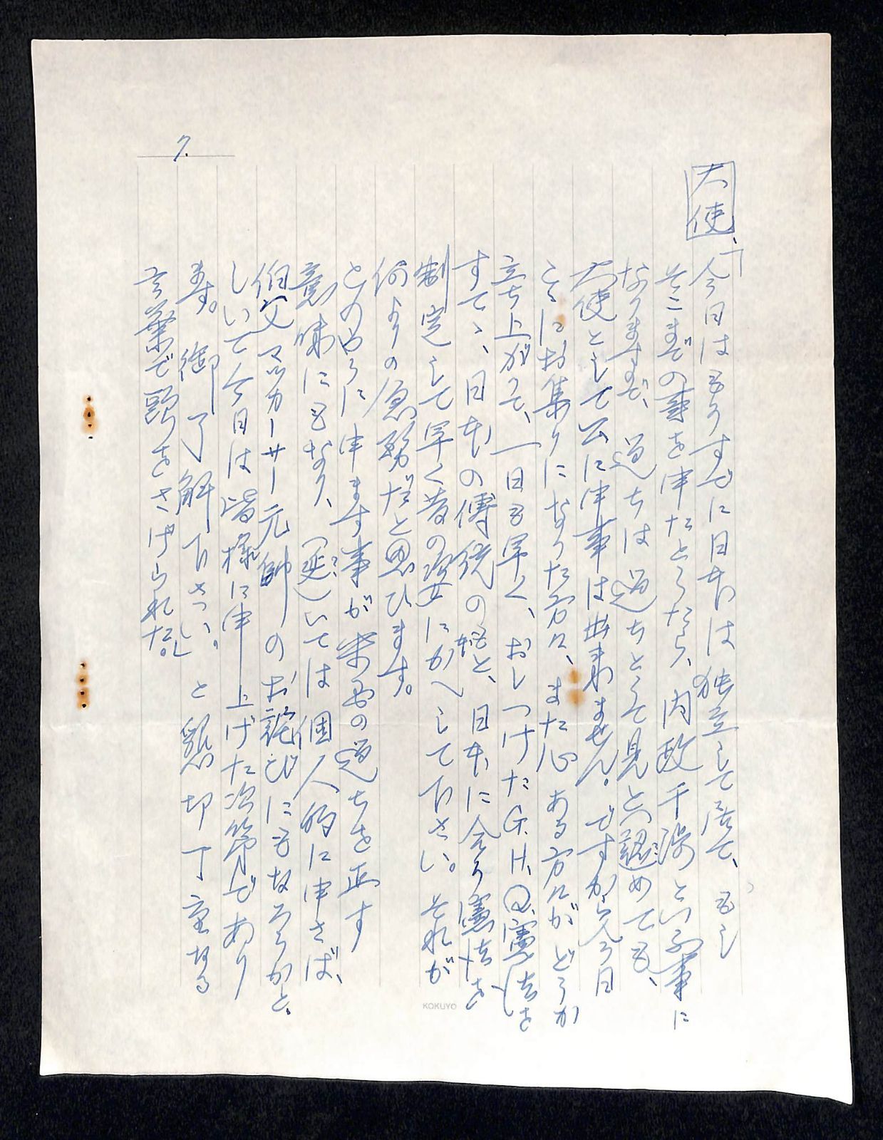 1960年、蜂須賀年子たち7名が、駐日大使ダグラス・マッカーサー2世と会見した際の手記(全7ページ)。