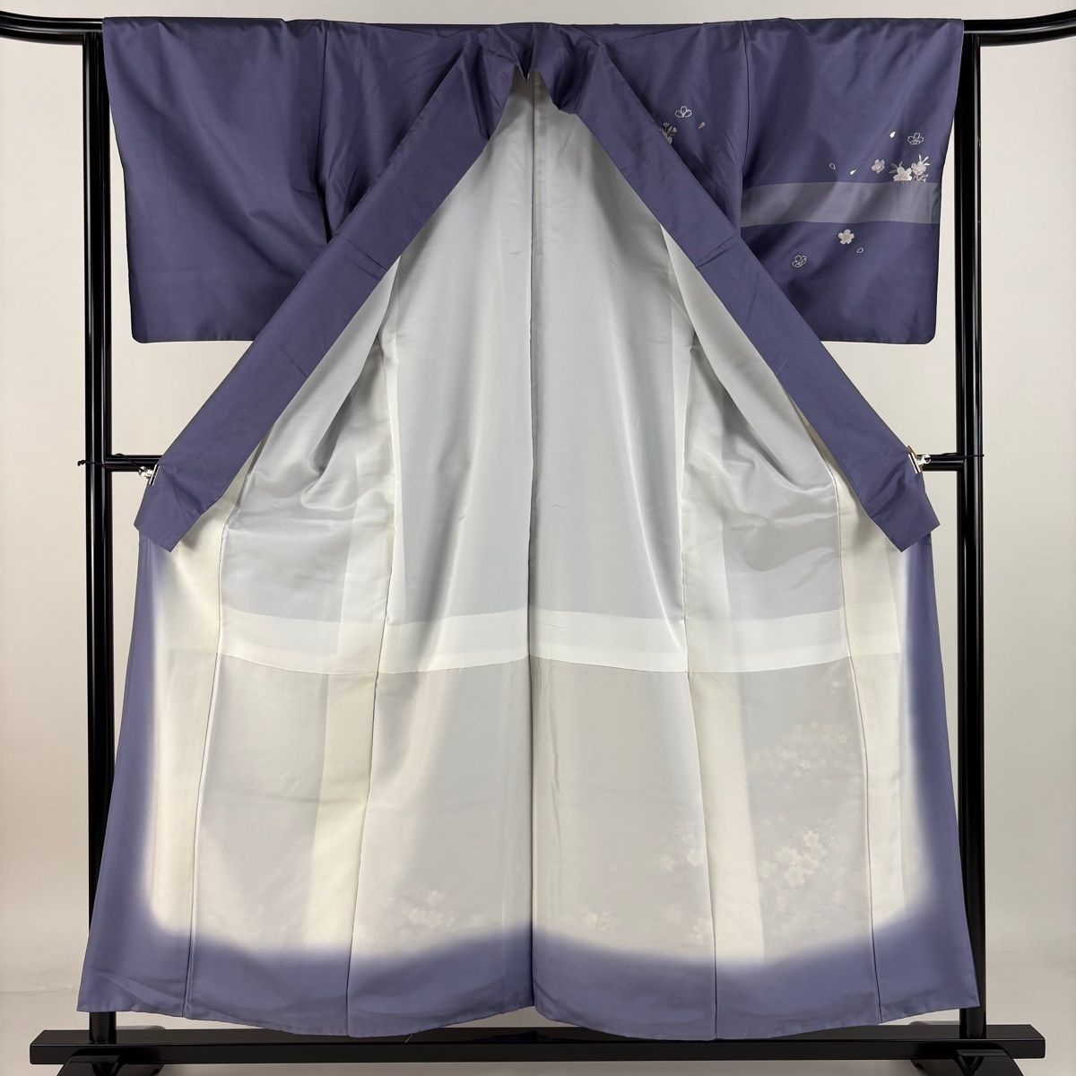 付下げ 身丈156 cm 裄丈64 M 袷 紬地 やまと 落款 桜 鳥 刺繍 青紫 正絹