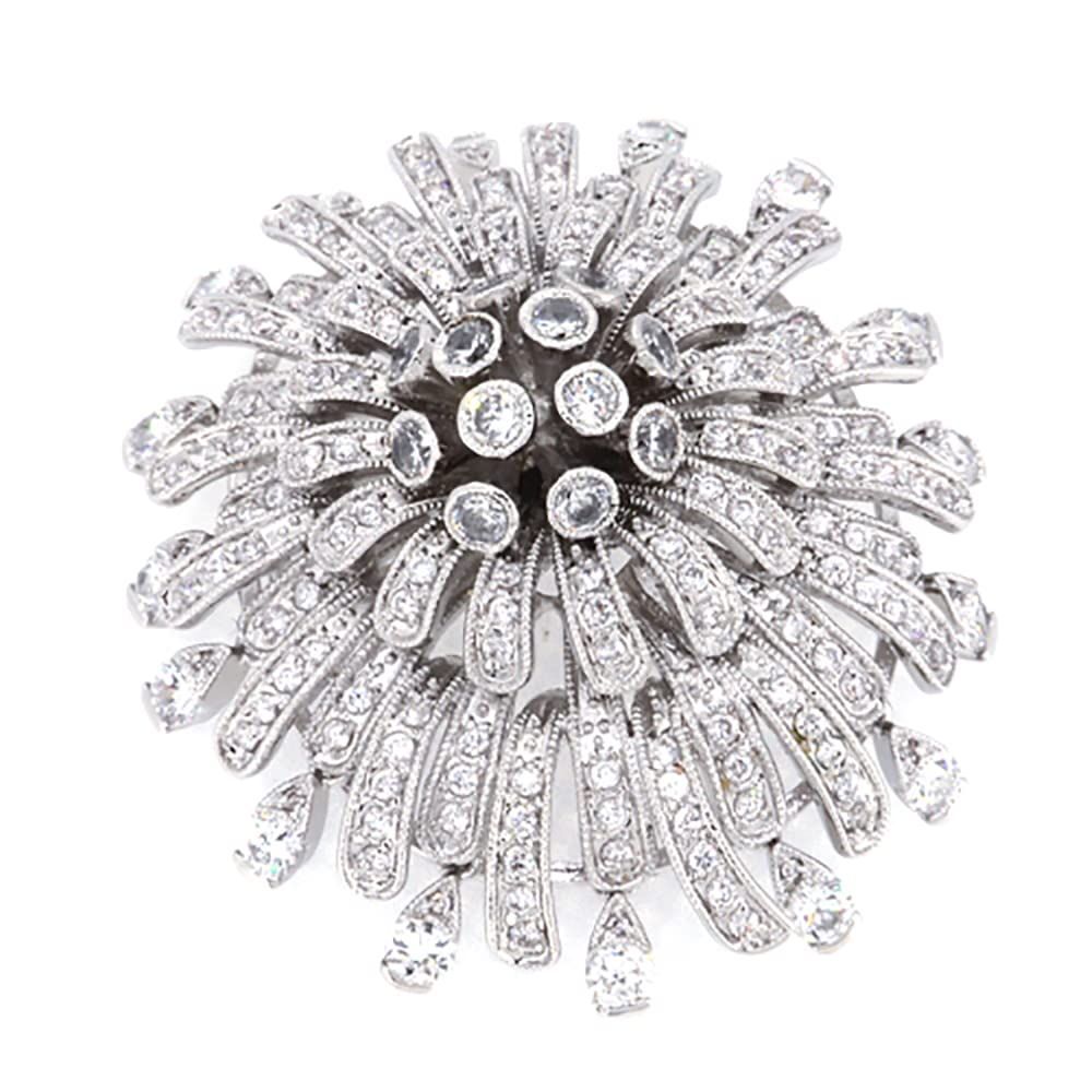 ロジウムメッキ エレガント 3.5 mmラウンドカット 37.2 g ホワイト BC 37002 フローラル シルバーパヴェブローチ LAVINA