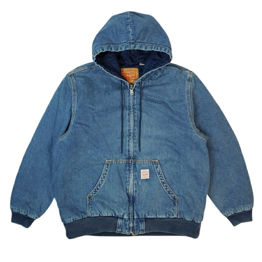 リーバイス LEVI S デニムジャケットWORKWEAR POTRERO デニム ジップアップフーディーMEDIUM INDIGO ミディアムインディゴキルティング ウォッシュ 中綿 リブジージャン Gジャン アウター 上着 ジェンダーレス ジェンダーフリー