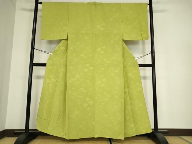平和屋着物 上質な色無地 単衣 扇面花地紋 苗色 正絹 az
