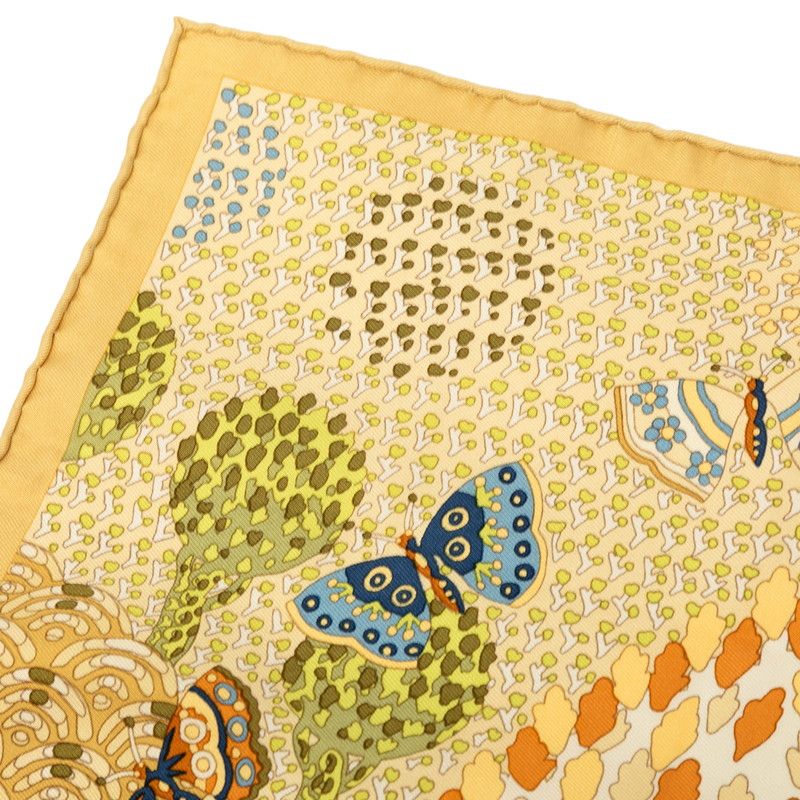 エルメス カレ45 プチカレ Les Ailes Pleines de Joie 歓喜の羽ばたき ゴールド ブラウン マルチ シルク レディース HERMES 1-0229420