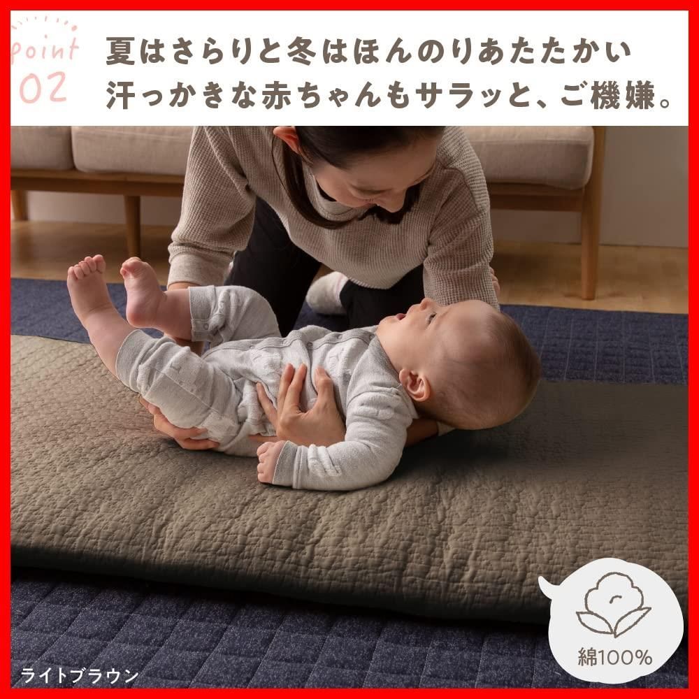 ベビーマットと言えども、中の布団は6cmの固綿を巻綿で包んだ寝具メーカーならではの本格仕様。へたりにくく、ボリューム感もあってソフトな寝心地です。まだおすわりがおぼつかない赤ちゃんに、転んでも痛くない安心感のあるベビーマットを選びたい方におすすめ。保育園のお昼寝布団やプレイマットにも最適です。