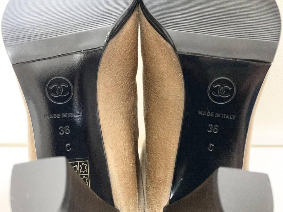 シャネル CHANEL 36 ツイードココマーク ムートンブーツ