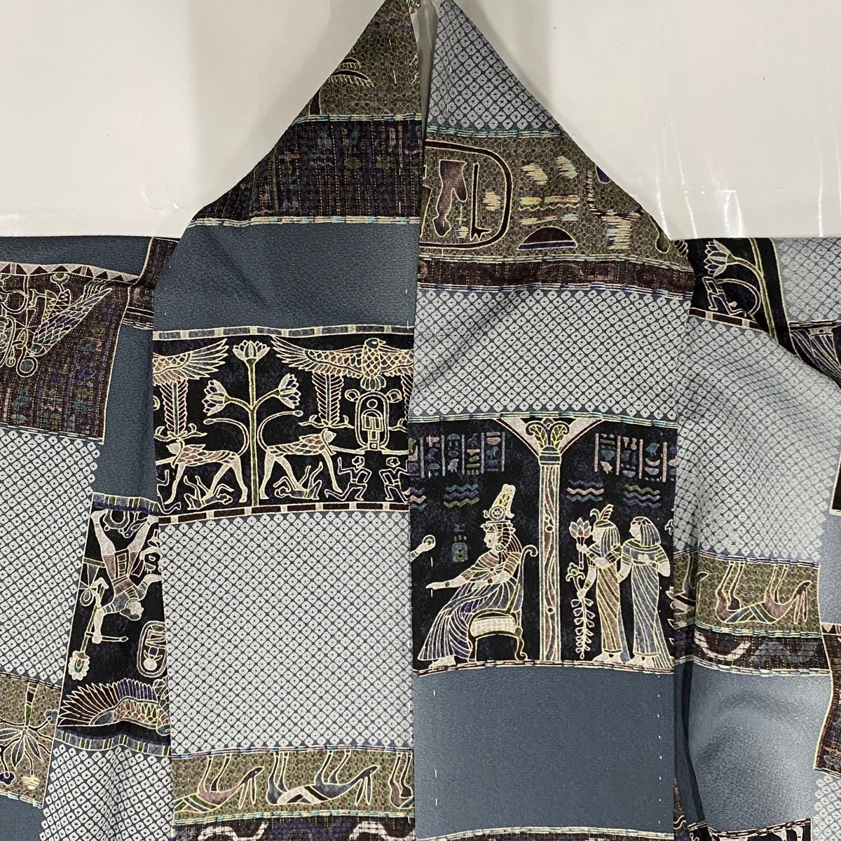 小紋 身丈157 cm 裄丈66 M 袷 コプト柄 動物 ぼかし 灰色 正絹 秀品