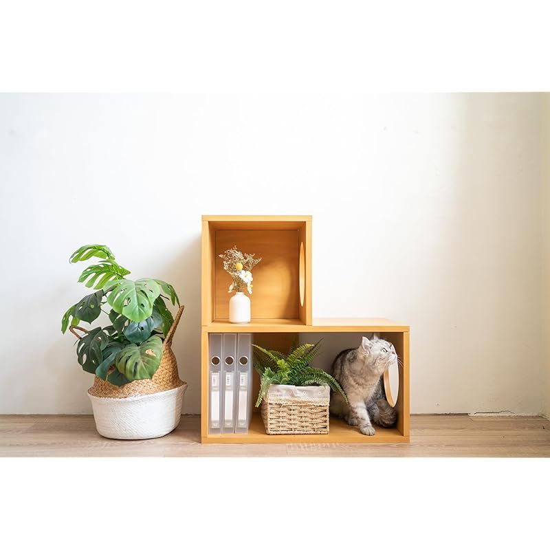 GBoardと呼ばれるフラットで耐久性に優れた、強力な紙パネルを使用して作られた猫用階段です。 ・猫ちゃんのステップやキャットタワーとしてはもちろん、本や雑貨を飾る棚としても使用可能 ・クギを使わず木製ビスと両面テープを使用しているので組み立て簡単 ・棚の向きはお部屋のレイアウトに合わせて組立可能 ・表面は撥水加工がしてあるのでお手入れ簡単 ・ホルムアルデヒド低減の最高基準 F☆☆☆☆認定を取得(認証機関:SGS、認定年:2023年) ・別売のHappy Daysキャットハウスと組み合わせてご使用いただけます