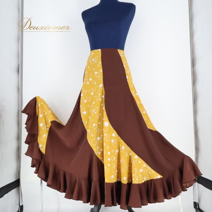 #フラメンコ #衣装 #スカート #ファルダ #HERMOSAIBERIA #ダンス衣装 #フラメンコスカート #ファッション #深い茶色 #黄土色 #ボリュームアップ #軽め素材 #トルソー #女性用 #ダンス #ステージ衣装 #ストリートファッション #コスチューム #おしゃれ #ENUTSU
