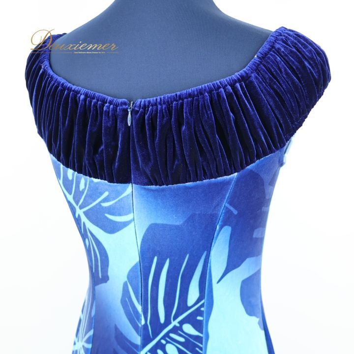 #フラダンス #衣装 #ドレス #ワンピース #ブルー #グラデーション #モンステラ #ベロア生地 #高級感 #女性用 #トルソー #オシャレ #ファッション #ダンス用品 #フラダンス衣装 #コスチューム #イベント #パーティー #華やか #伸縮性 #ENUTSU
