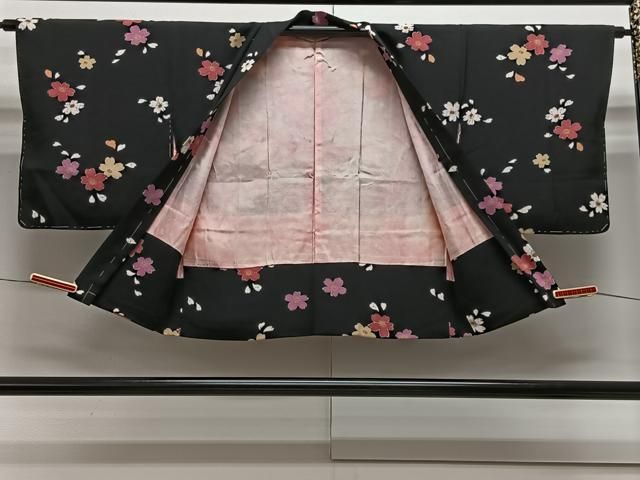 平和屋着物#羽織 舞花文 黒地 正絹 ua