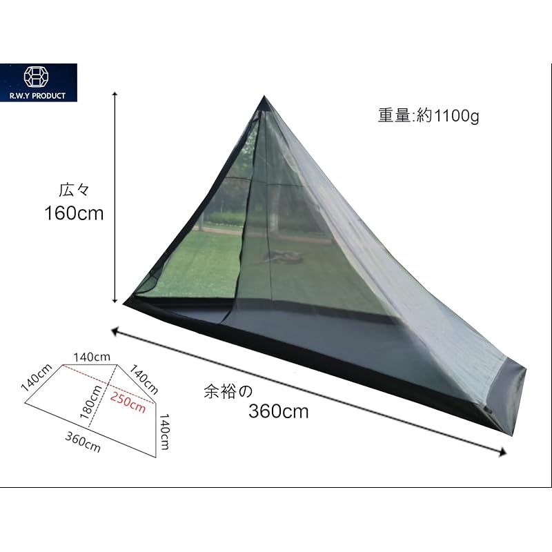 R W Y PRODUCT ワンポールテント 蚊帳 キャンプ テント 2人用 3人用 インナーテント モスキートネット パップテント ソロキャンプ カンガルーテント メッシュテント 0