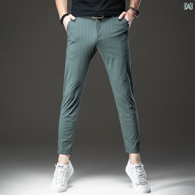 28 1 メンズ ファッション 服 オシャレ シンプル 大人 かっこいい 大きいサイズ ストリート 紳士服 夏 九分丈 パンツ 薄手 伸縮性 ストレッチ ビジネス スリムフィット ストライプ カジュアル