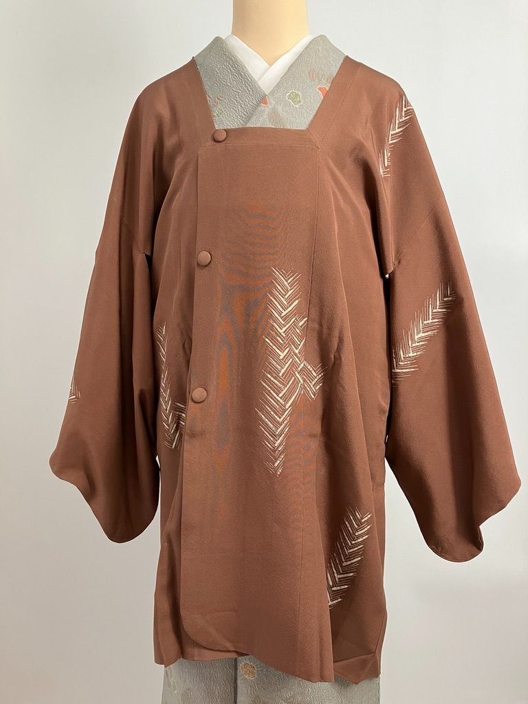 矢羽柄風 道行コート ベージュ 茶色 柿色 C 025