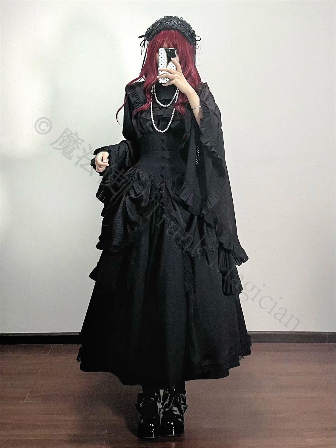 デザイン: ゴシックロリータスタイルのセットアップで、修道女をイメージしたデザイン。姫袖がエレガントな雰囲気を演出します。