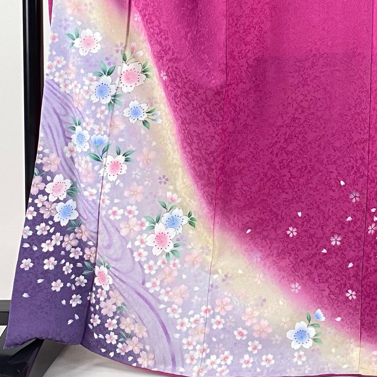 振袖 身丈166 cm 裄丈66.5 M 袷 桜 流水 金彩 ぼかし ピンク 正絹 秀品