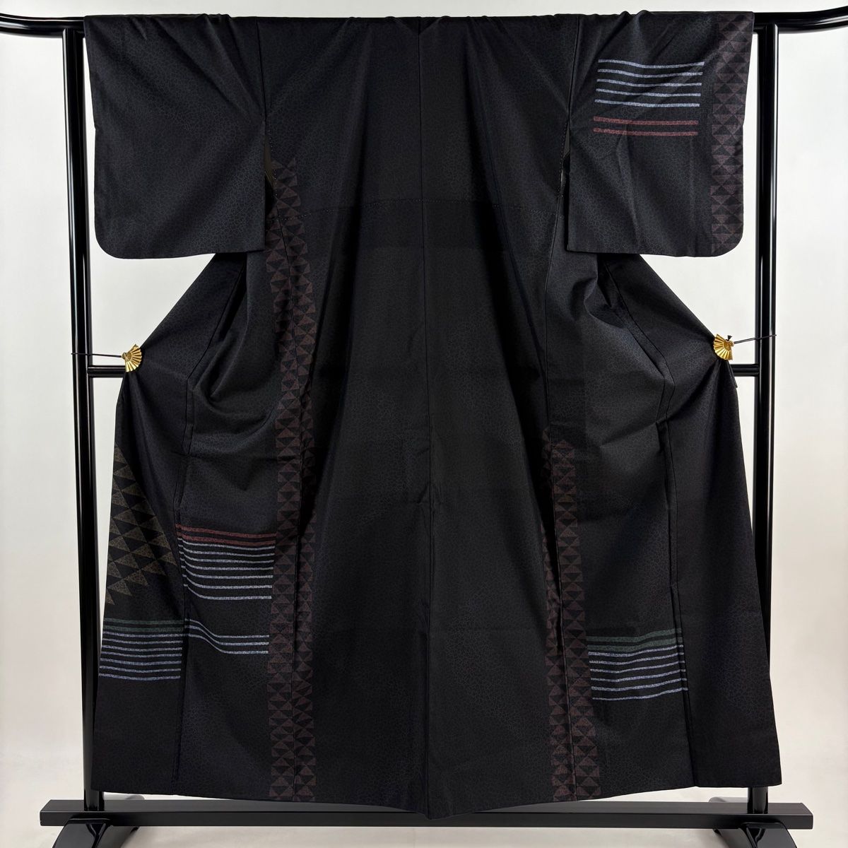 付下げ 身丈155.5 cm 裄丈63.5 S 袷 紬地 鱗 縞 黒 正絹 秀品