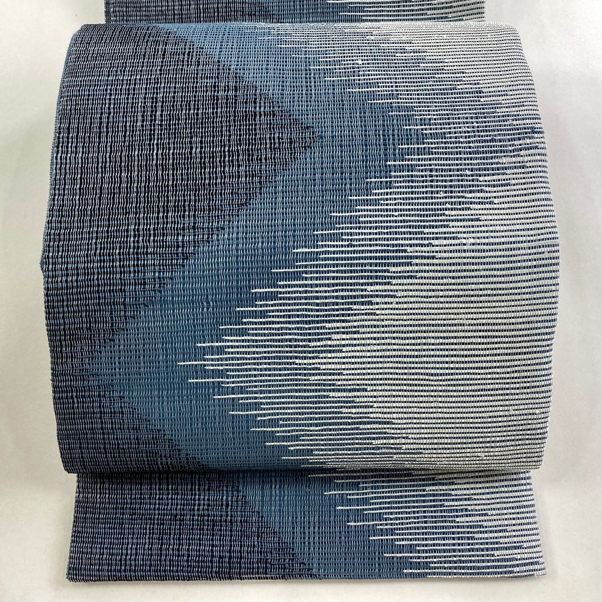 袋帯 秀品 夏帯 ますいわ屋 幾何学 青灰色 六通 正絹