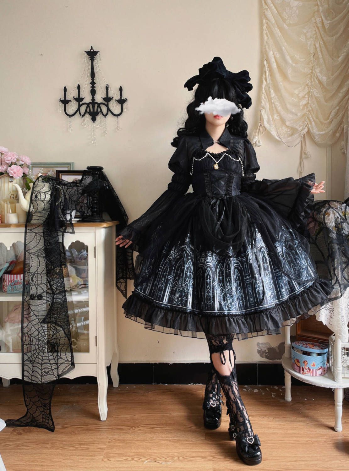新品 オリジナルデザイン 暗黒ゴシック風 Lolitaワンピース jsk ドレス 豪華刺繍 長袖 夏/秋用 エレガント ゴスロリスタイル 高品質 lo20