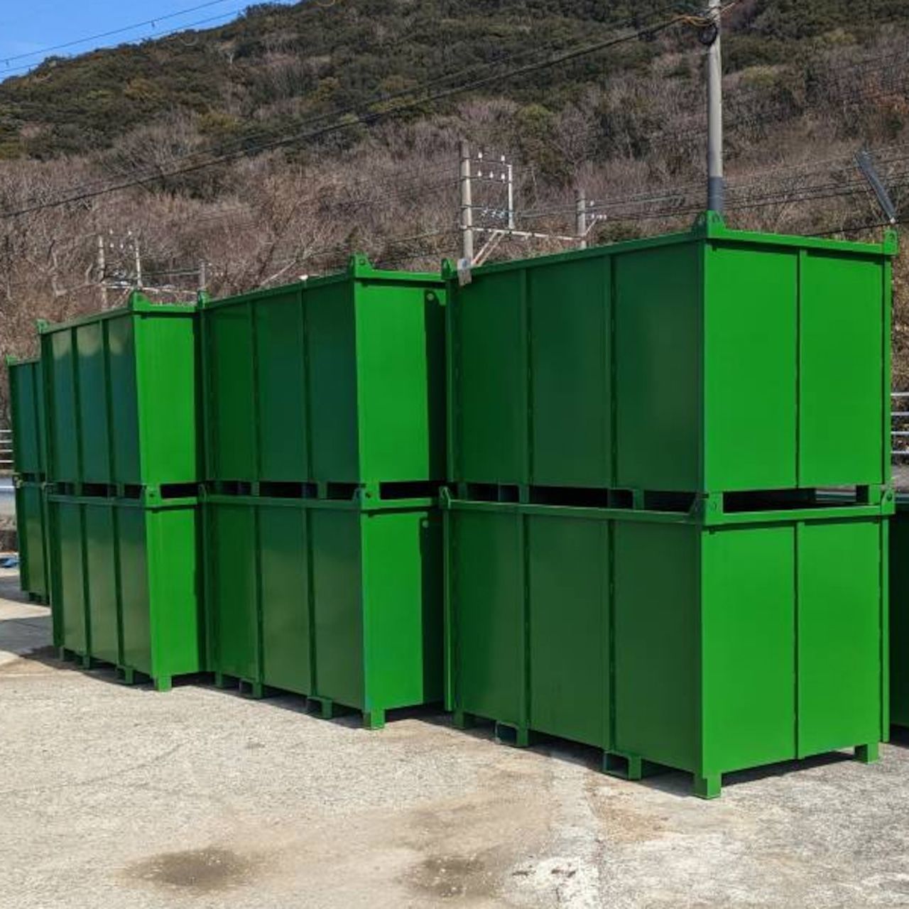 ページ可 1 5立米 中型 バッカン 鉄箱 緑 産廃ボックス リサイクルボックス 5立方 フォークリフト 吊り下げ可 積重 水抜き穴 グリーン 5 スクラップ 関西 大阪 和歌山市