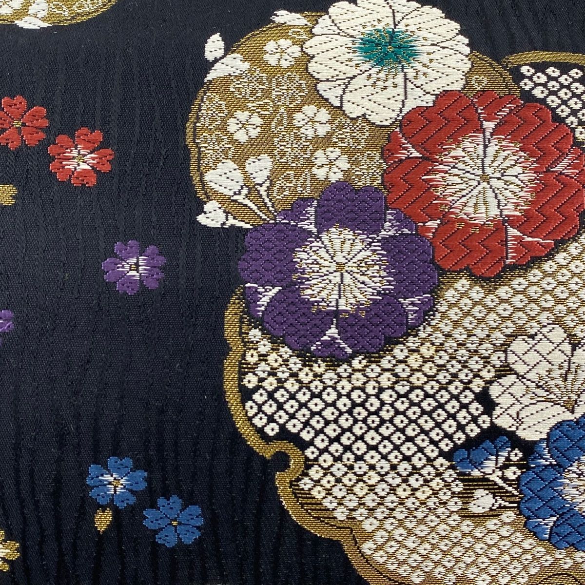 袋帯 秀品 振袖向き 雪輪 桜 唐織 金糸 黒 六通 正絹