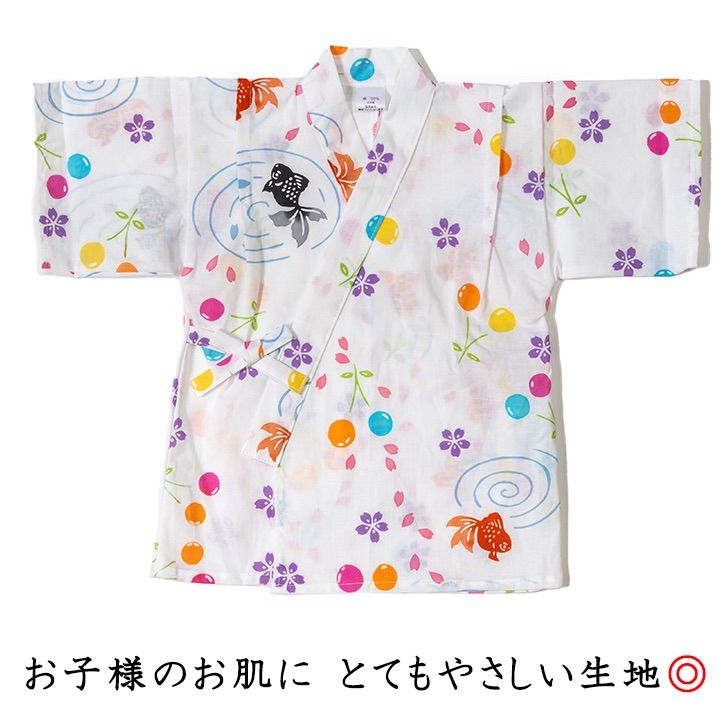 甚平 子供 女の子 金魚 きんぎょ さくらんぼ サクランボ 5~6歳 110 cm前後 ベビー キッズ ボーイ ガール 甚兵衛 セパレート 伝統技法 注染本染め やさしい 綿100% 平織り 染色 プレゼント ギフト 出産祝い おしゃれ