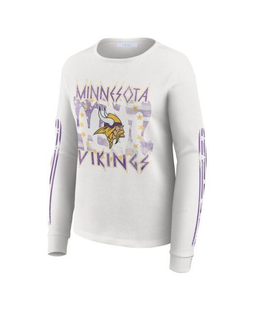 Women'sWhiteMinnesotaVikingsGraphicWaffleLong-SleeveT-Shirt