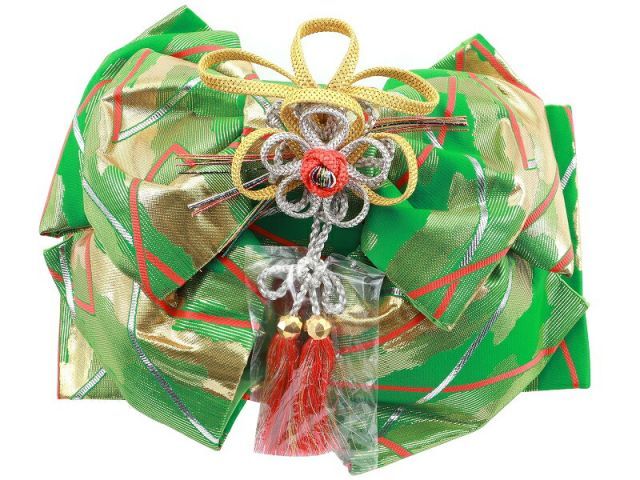 七五三 七歳用 簡単 帯飾り付き 結び帯 大寸 箱なし グリーン系 DA-247-84