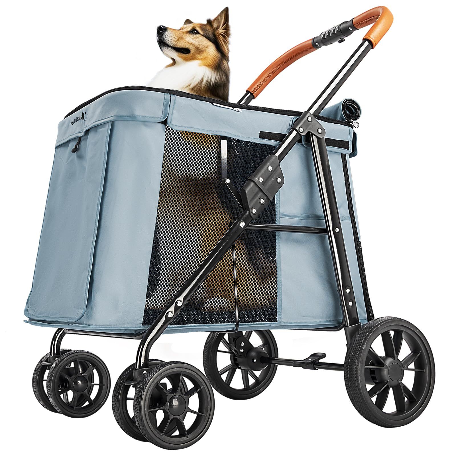 Joyfultails ペットカート 大型犬 中型犬 多頭用 ドッグカート 大空間 ワンタッチ 折りたたみ式 ペットバギー 耐荷重30KG お出かけ 散歩 通院 老犬介護用 犬用ベビーカー 組み立て簡単(シャドウブルー)