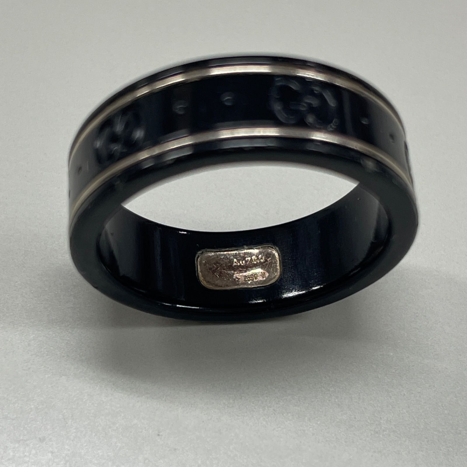 GUCCI アイコンGG シンバンド K 18ホワイトゴールド × コランダム リング 指輪 グッチ ブラック系 19号 273 M 3