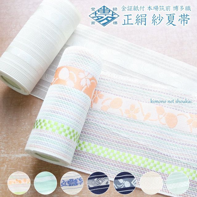 夏向けの、本場筑前博多の紗四寸単(ひとえ)帯です。