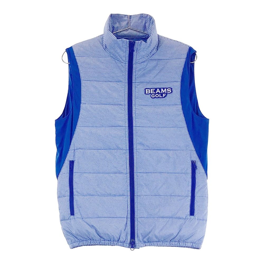 サイズ S BEAMS GOLF ビームスゴルフ ダウンベスト 千鳥柄 ブルー系 ゴルフウェア メンズ ストスト