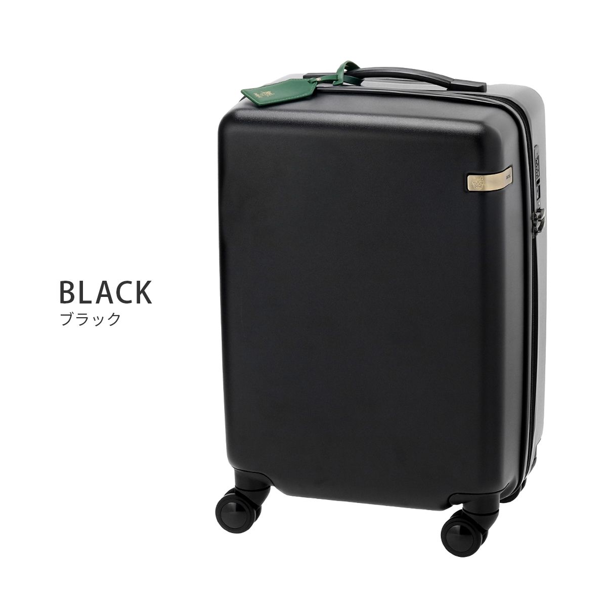 ブラックの本体に落ち着いたアンティークゴールドの金具を組みわせ、シンプルながらもこだわりのあるデザインに仕上げたスーツケース。