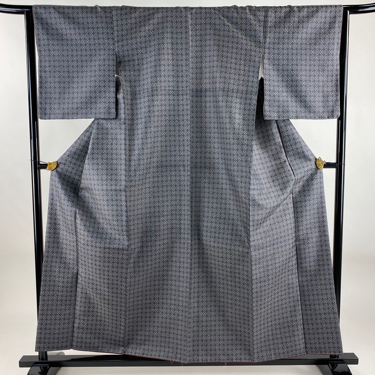 紬 身丈159 cm 裄丈64 M 袷 絣 幾何学 灰色 正絹 秀品