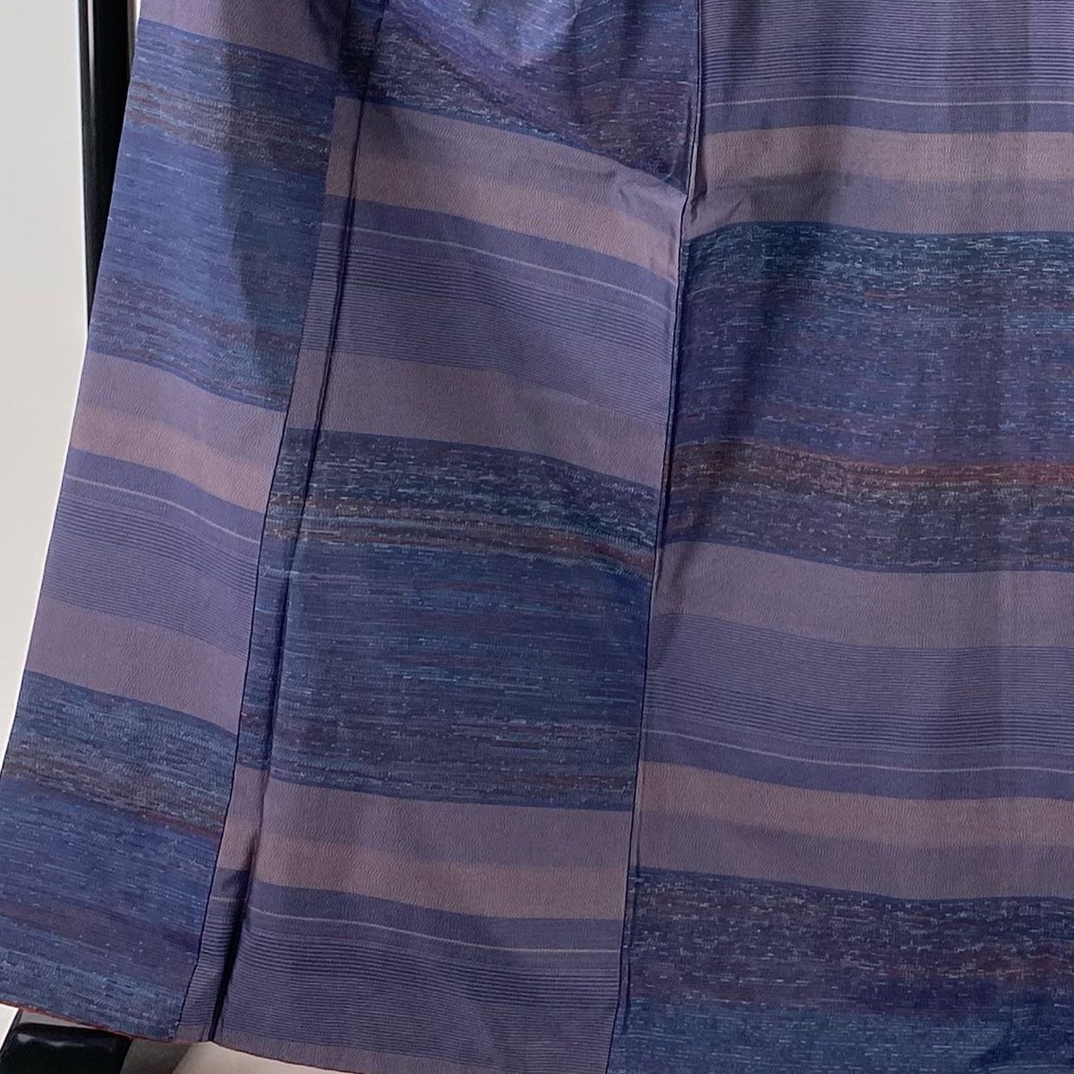 紬 身丈167 cm 裄丈69.5 L 袷 段縞 市松 紫 正絹 秀品