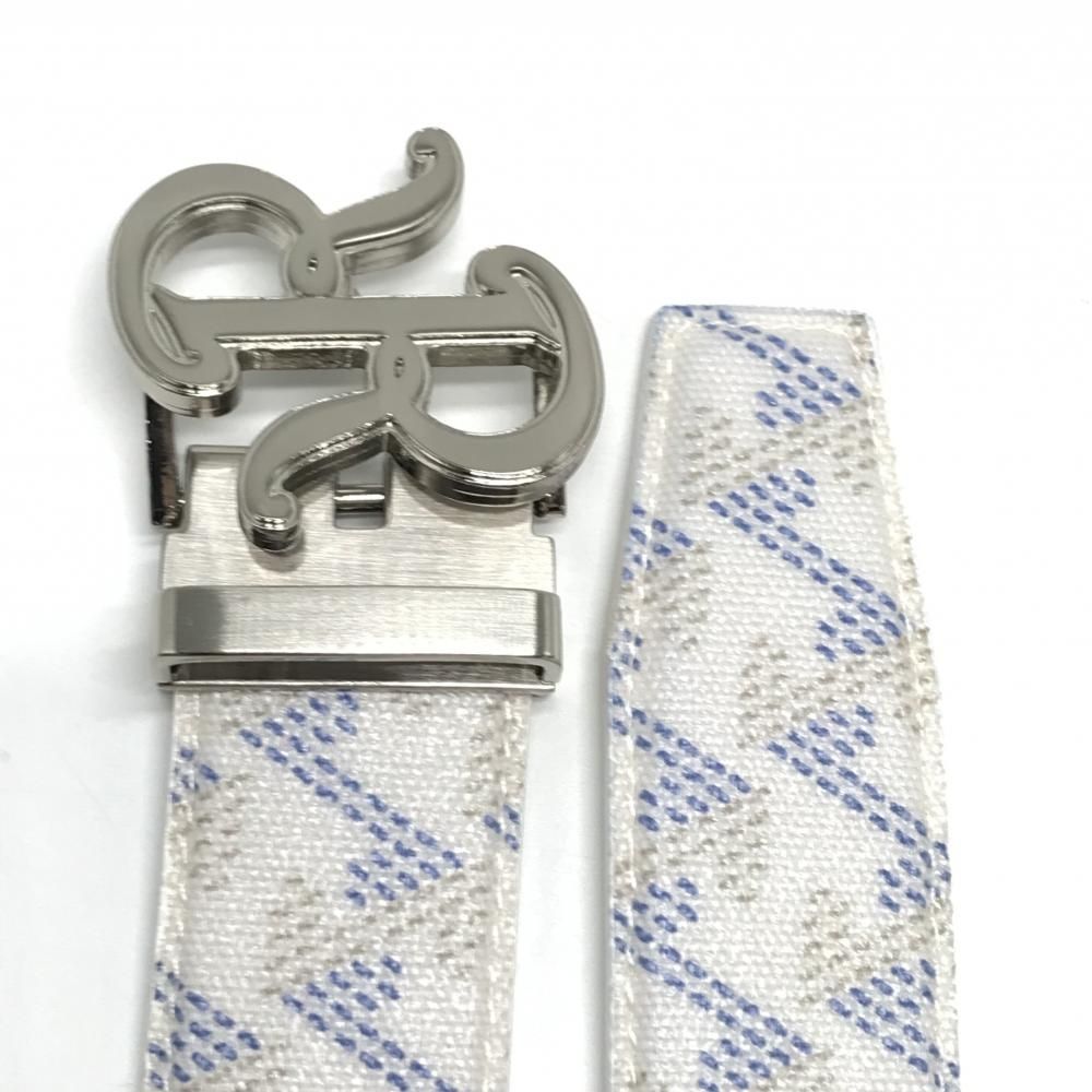 超 レザレクション ベルト 白×ブルー 総柄 ロゴバックル レディース ゴルフウェア Resurrection