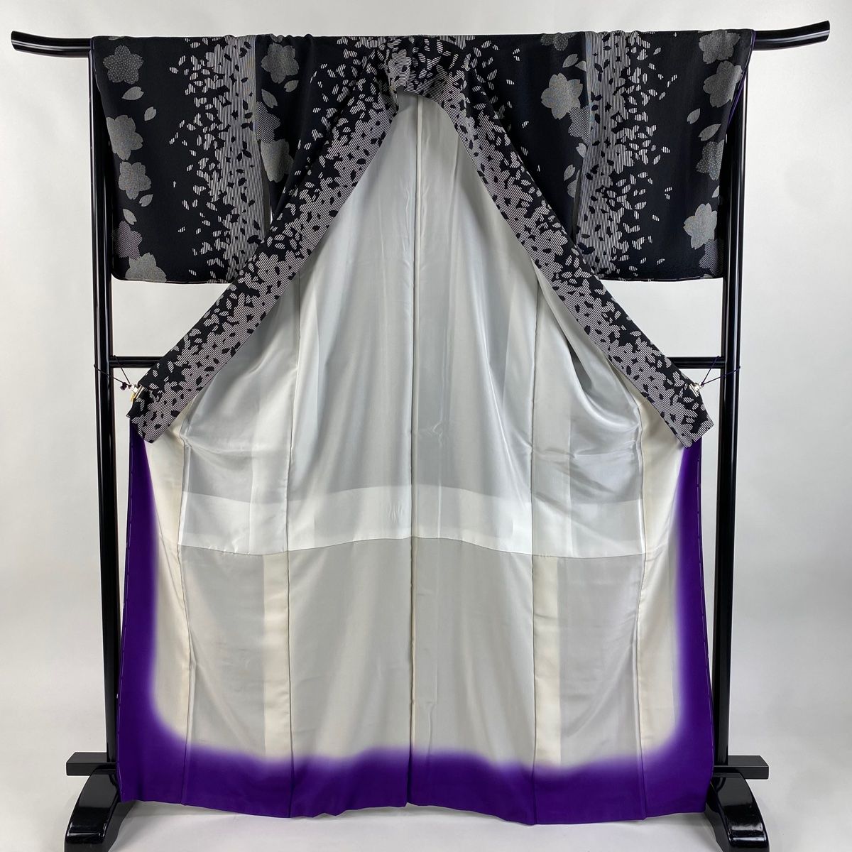小紋 身丈168 cm 裄丈68 L 袷 桜 花びら 黒 正絹