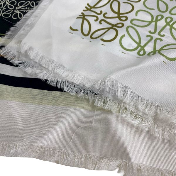 ロエベ LOEWE アナグラム スカーフ ショール ストール 大判 スクエア 白 ホワイト マルチ シルク100% レディース 5 E 256