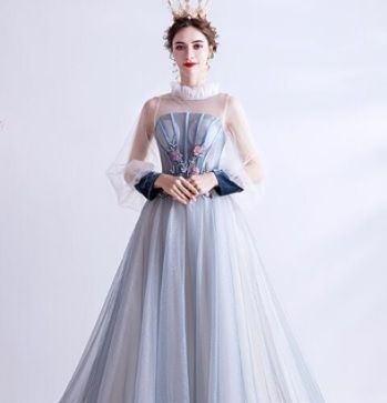 豪華なチュールロング丈パ-ティ-ドレス。サテン地の上にチュールをかぶせたエレガントなデザインです。袖はチュ-ル仕様になっていて透け感がエレガントです。胸元は立体刺繍が施されエレガントで大人の魅力をアップ。後ろの裾が長い引きずるデザインです。前撮り撮影やパーティやイベント、結婚式など、様々なシーンで、気品のある印象を与えてくれる一枚です。背中網掛けですので紐の結び具合により多少サイズ調整も可能です。背中結び紐有り。胸パット付。裏地有。
