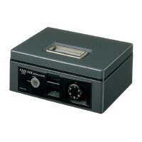 ●サイズ/外寸法:W272×D215×H113mm、内寸法:W231×D160×H57mm●材質/本体:鋼板(焼付塗装)、本体ケース・コイントレー・前面パネル:ABS●コイントレー仕様/コインカウンター付き(コイン全6種各50枚収納)、札入れ1列。●シリンダー錠・ダイヤル錠●鍵2個付き●書類押さえ(フタ裏)付き●質量/2.40kg