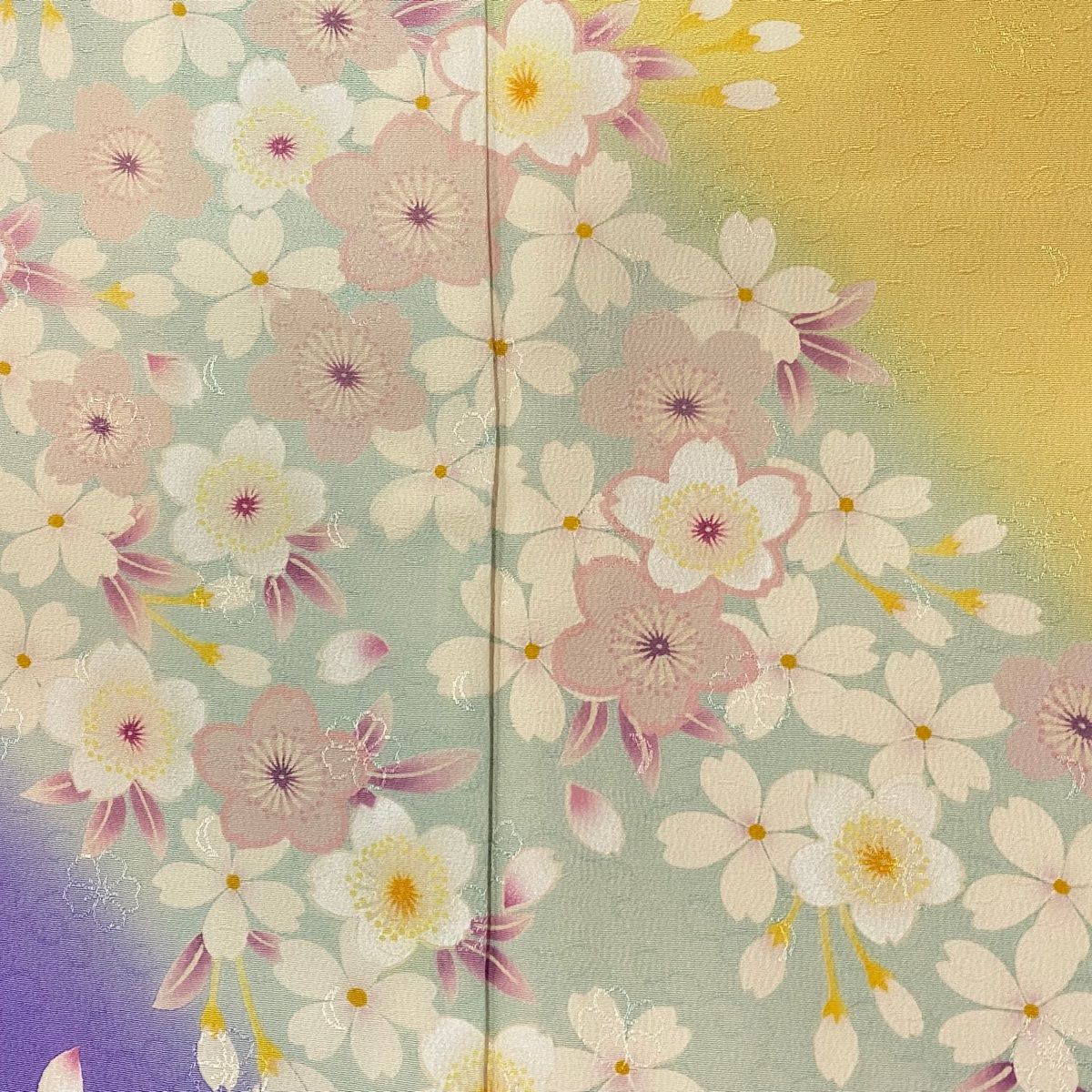 振袖 身丈167.5 cm 裄丈70 L 袷 桜 地紋 染め分け 薄黄 正絹 名品