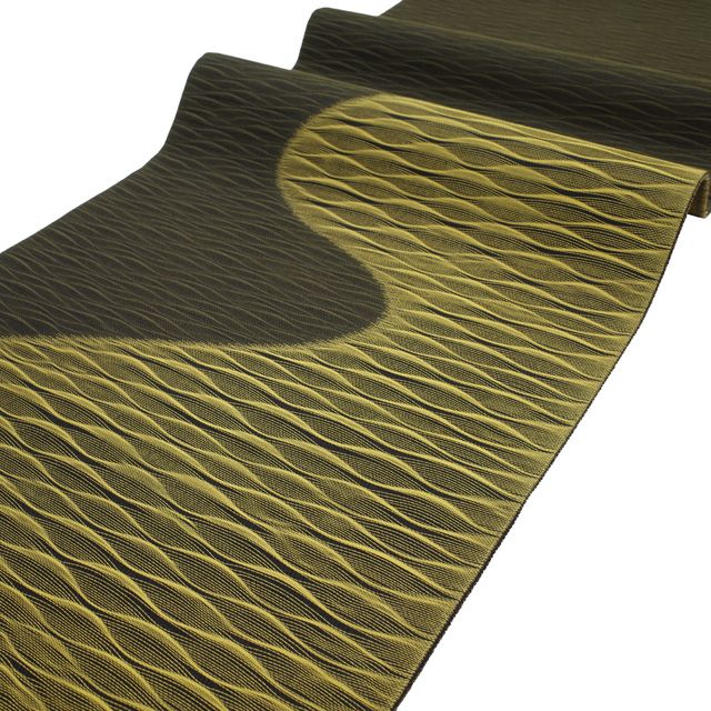 【新古品】 すごい値! 袋帯 未使用 正絹 黒 黄色 波線 織り分け カジュアル 美品 上質 さが美 扱い 新古品 仕立て上がり 春 秋 冬 お太鼓柄 未使用 袋帯 ふくろ帯 帯 カジュアル帯 お出かけ ショッピング 観劇 など カジュアルシーンに 小紋 紬 などに合わせて たとう紙付き 送料無料 販売 購入 リサイクル すごいね みやがわ neb01565