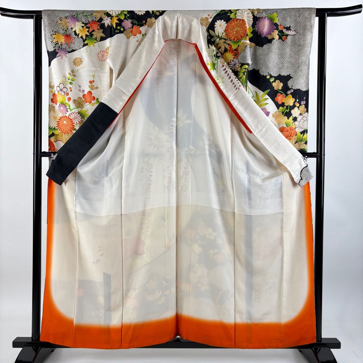 振袖 身丈159 cm 裄丈62.5 S 袷 花車 藤 金彩 金糸 クリーム 正絹 秀品