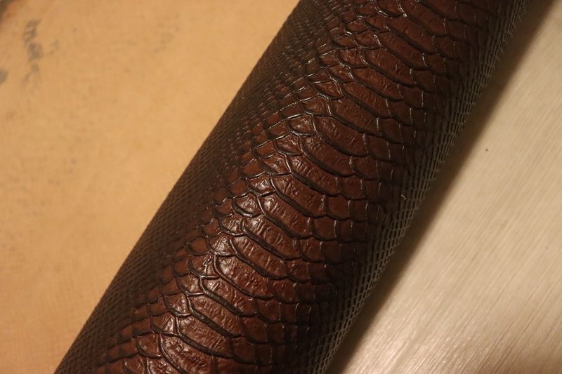 ヴィンテージブラウン 117 ds ヌメ革 ショルダーレザー 牛革 イタリア レザー スネーク型押し はぎれ 一枚革 レザークラフト 革 皮 本革 diy 生地 材料