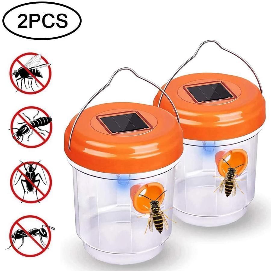 【効率的な虫除け】2つの入口チャンネルの特別なデザインは、より多くの虫やハチを罠に引き付ける可能性を高め、甘い砂糖水とUVライトで虫を引き付けます。