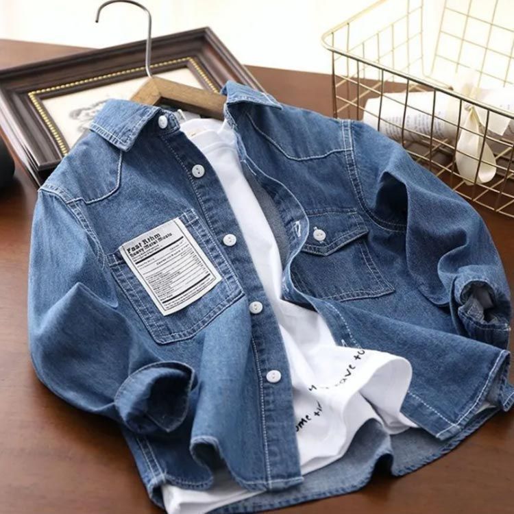 デニムシャツ 男の子 子供服 子ども服 こどもふく カジュアルシャツ キッズ 長袖シャツ デニムトップス デニム 羽織 アウター ジュニア 長袖 通学 通園 お洒落 春物 秋物 韓国風 春 秋 goudoudou 6298