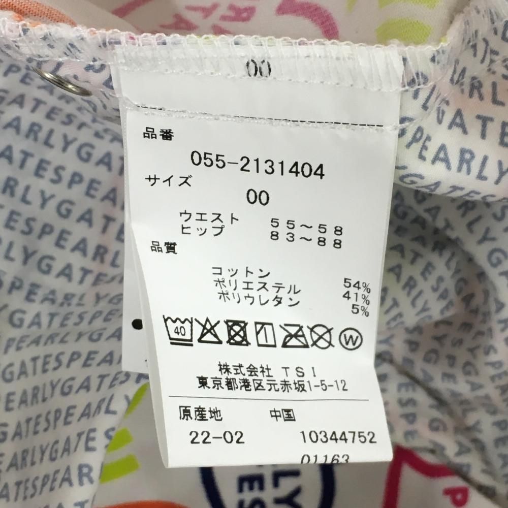 パーリーゲイツ パンツ 白×マルチ ハートロゴ総柄 ストレッチ レディース 00 XS ゴルフウェア PEARLY GATES