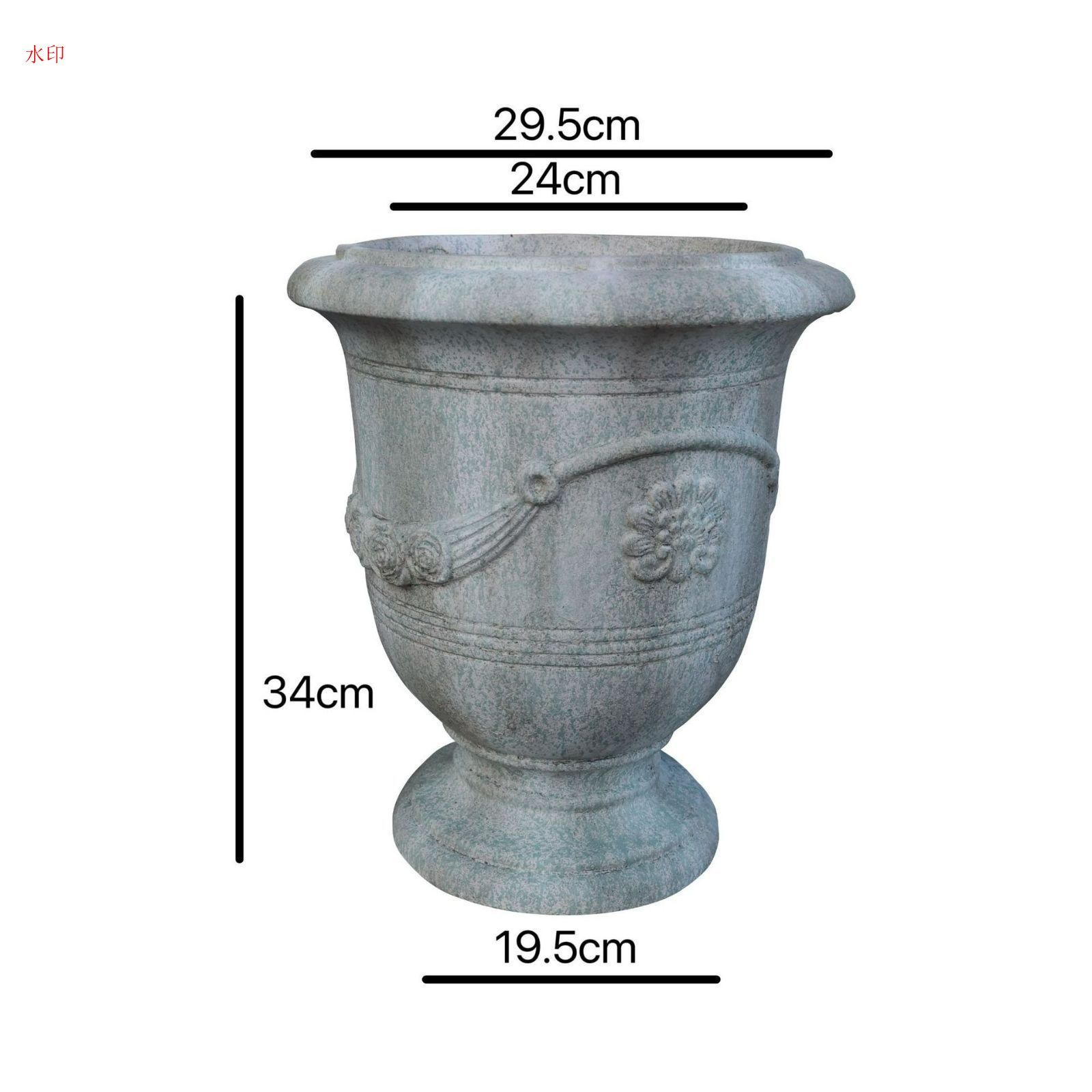 こちらの植木鉢は、ヴィンテージ調のシックなデザインが印象的なアイテムです。精巧に彫刻された薔薇のモチーフが、ガーデニングのアクセントとして目を惹きます。美しい彫刻は、まるでアート作品のように花々を引き立て、庭や室内の空間に特別な雰囲気をもたらすことでしょう。
